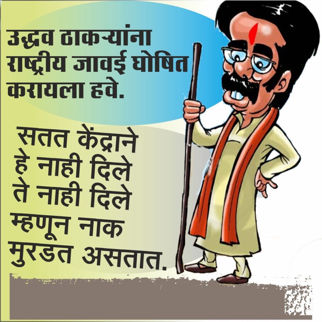 ‘हे ट्विट करताना अतुल भातखळकर यांनी मुख्यमंत्री उद्धव ठाकरे यांचं एक व्यंगचित्र शेअर केलं. यावर ‘उद्धव ठाकरे यांना राष्ट्रीय जावई घोषित करायला हवे, सतत केंद्राने हे दिले नाही ते दिले नाही म्हणून रडत असतात’ असं लिहण्यात आलं आहे.