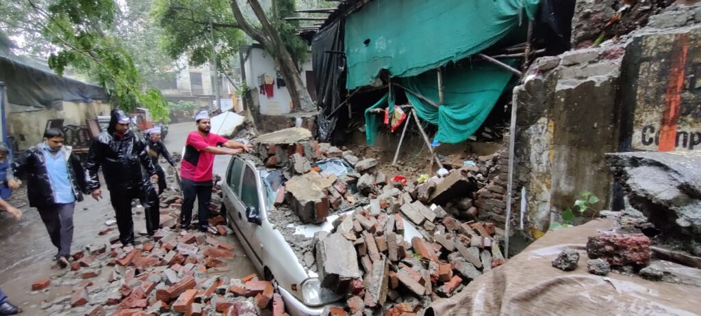 इमारतीच्या संरक्षण भिंत कोसळल्या, जनजीवन विस्कळीत