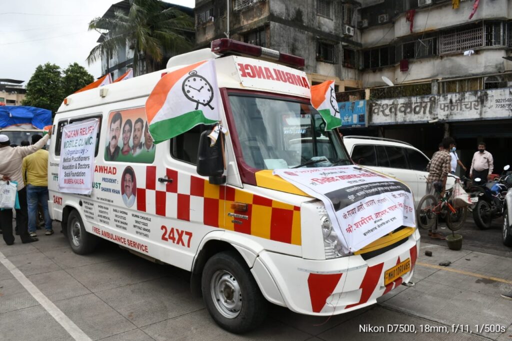 कोकणाला पुराचा मोठा फटका बसला आहे. या पुरामुळे अनेकांचे संसार उद्ध्वस्त झाले आहेत. या पूरग्रस्तांना साह्य करण्याची संकल्पना गृहनिर्माण मंत्री डाॅ. जीतेंद्र आव्हाड यांनी मांडली. त्यानुसार गेले दोन दिवस राष्ट्रवादी काँग्रेसकडून मोठ्या प्रमाणावर जीवनावश्यक वस्तू कोकणात पाठविण्यात येत आहे. आजही विरोधीपक्ष नेते अशरफ शानू आणि पठाण परिवहन सदस्य तथा विधानसभा क्षेत्राध्यक्ष शमीम खान यांनी, बिस्लेरी पाण्याच्या बाटल्यांचे एक हजार बॉक्स, क्रीम बिस्किटांचे पंधरा हजार पाकिटे, तीन हजार ब्लॅन्केट, तीन हजार चादर, सातशे चटई या जीवनावश्यक साहित्याचे ट्रक डाॅ. जितेंद्र आव्हाड यांच्या हस्ते आनंद परांजपे , सय्यद अली अश्रफ, यांच्या उपस्थितीत रवाना करण्यात आले. याचवेळेस बारा डाॅक्टर, ईसीजी यंत्र अन् तंत्रज्ञ, औषधांनी सुसज्ज रुग्णवाहिका देखील यावेळी कोकणाच्या दिशेने रवाना करण्यात आली.